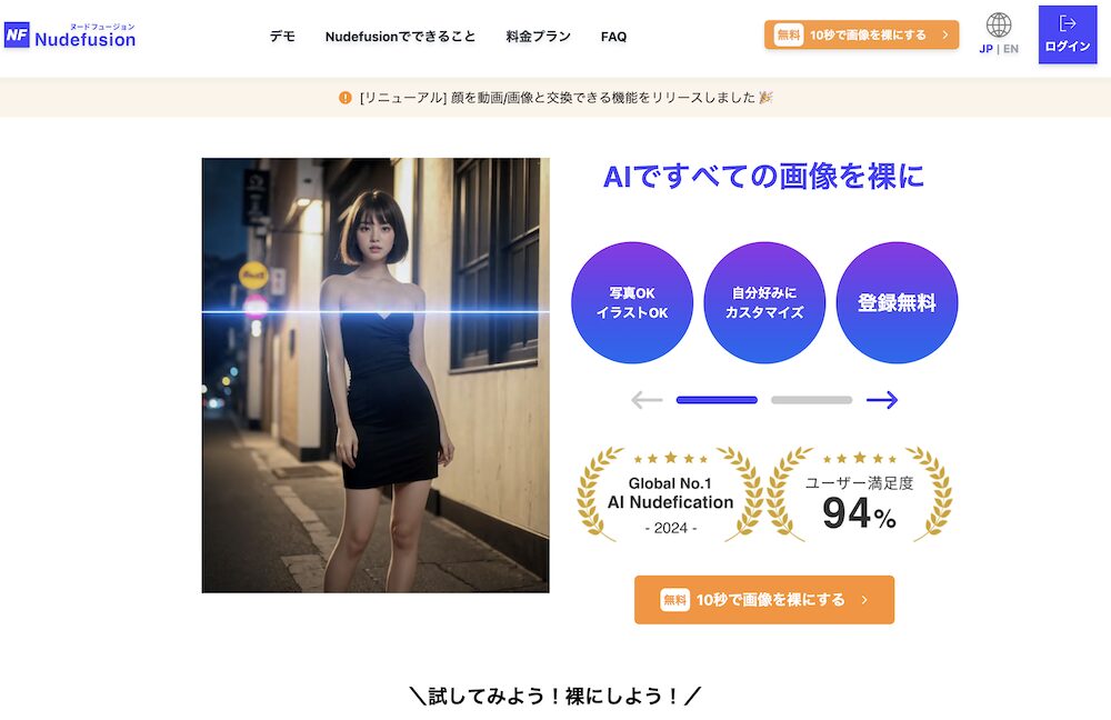 どれだけ簡単にヌード画像が作れるのか、実際に試してみるべく、数あるヌード化アプリの中でも、今回は「Nudefusion(ヌードフュージョン)」というサービスを使ってみた。